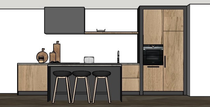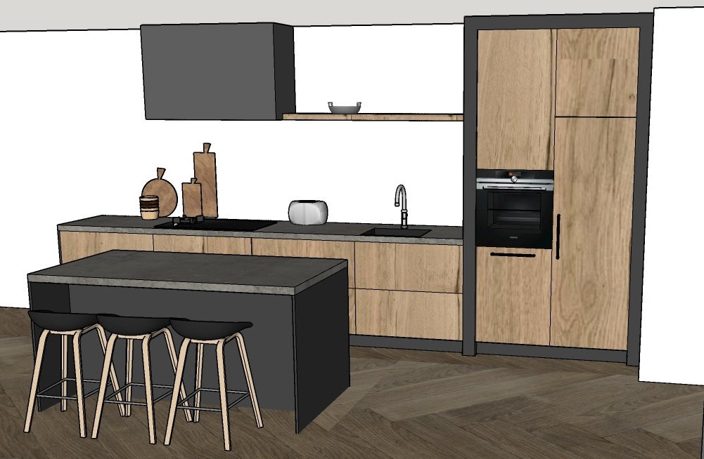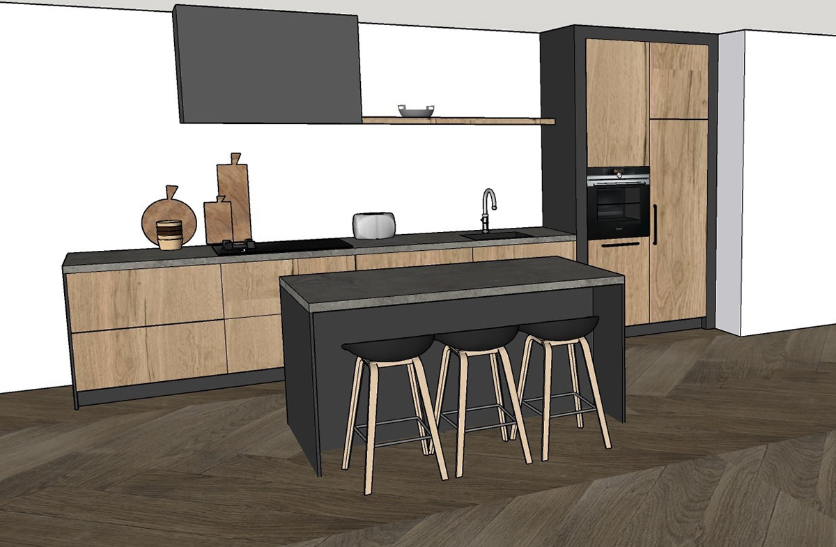 Voor een nieuw appartement in Lelystad heb ik o.a. dit keukenontwerp in 3D mogen maken.
